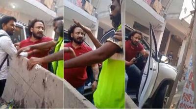 फॉर्च्यूनर से निकला गुंडागर्दी करता शख्स, सफाईकर्मी को थप्पड़ मारकर पिस्तौल तानी, गाली-गलौज का वीडियो सोशल मीडिया पर आग की तरह फैला