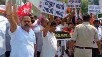 रायबरेली में राहुल गांधी के काफिले को रोकने सड़क पर बैठे मंत्री और भाजपा कार्यकर्ता